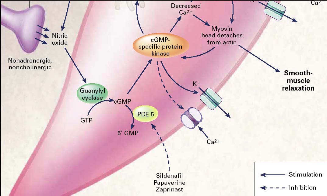 - Phosphodiesterase (PDE) is an enzyme that causes breakdown of cyclic GMP, which is the direct intracellular mediator in the nitric oxide pathway.
