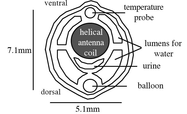 Cross-sectional detail of TUMT catheter, showing relationship of microwave antenna to cooling water