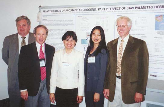 Investigative group responsible for making this poster "Best in Class" at the 2001 Annual AUA Meeting (left to right): Frederick J. Dorey, Ph.D. (UCLA), Leonard S. Marks, M.D. (UCLA), Malu Macairan, M.D. (USRF), Arlyn S. Llanes, CCRP (USRF), and David L. Hess, Ph.D. (Oregon Health Sciences U.) |