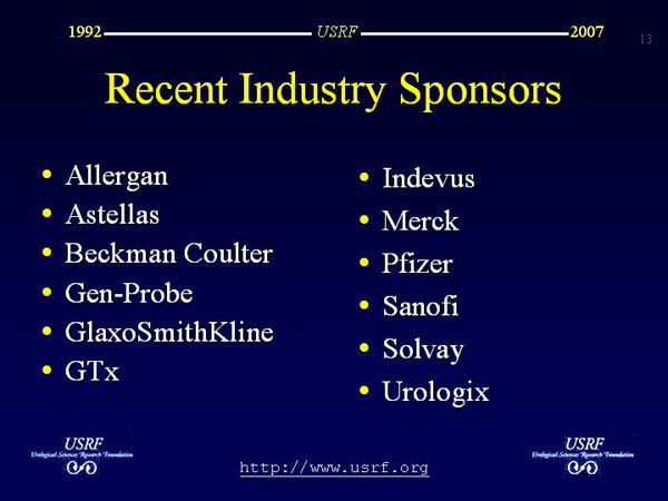 Recent industry sponsors include some of the best-known names